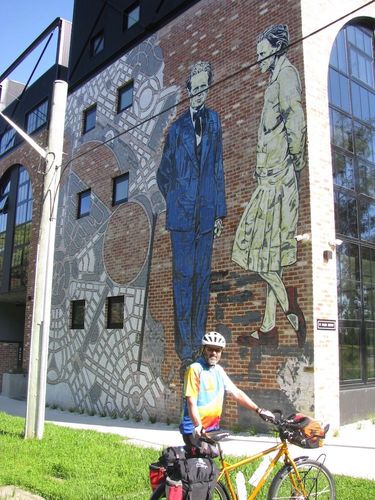 Our one-day adventure began in the leafy suburb of Griffith, one of the original neighbourhoods built for public servants in the 1920s. We met up with our guides Mark and Denise, before pedalling through the suburbs - and past an imposing mural of the city designers, Walter and Marion Burley Griffin.