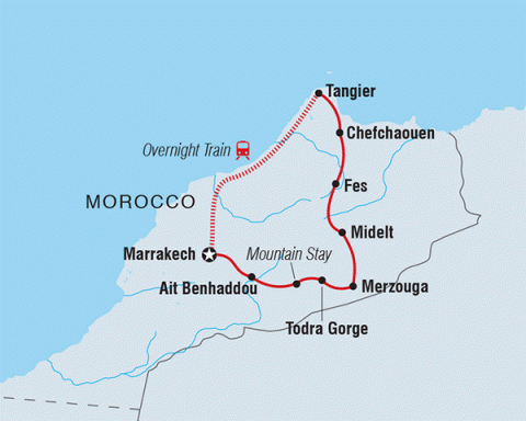 - Accommodation: Hotel (10 nights), overnight train (1 night), Desert Camp (1 night), Gite (1 night)