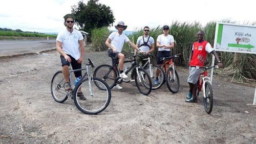 - Cycling through sugar cane plantation,